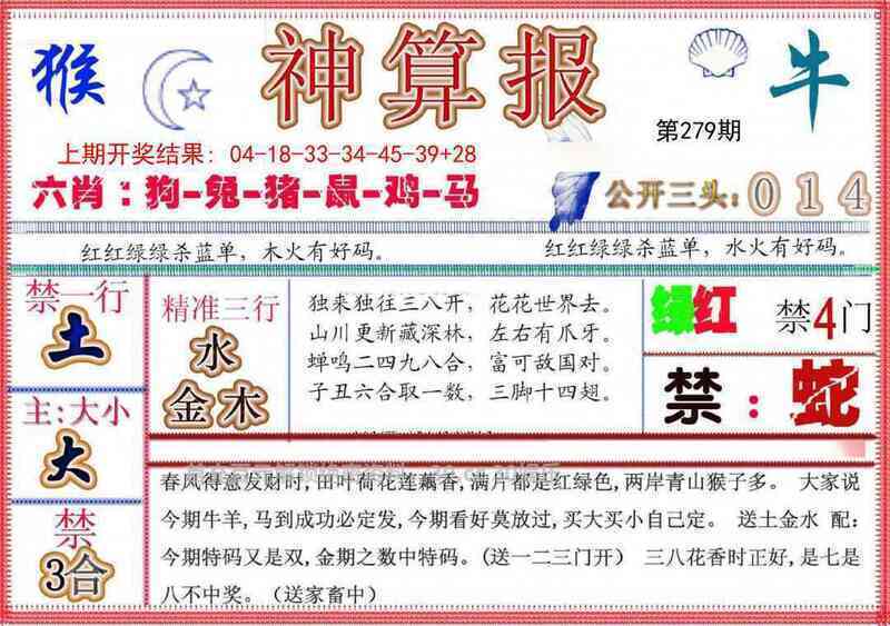 278期:前后中特【前肖】开:虎28准